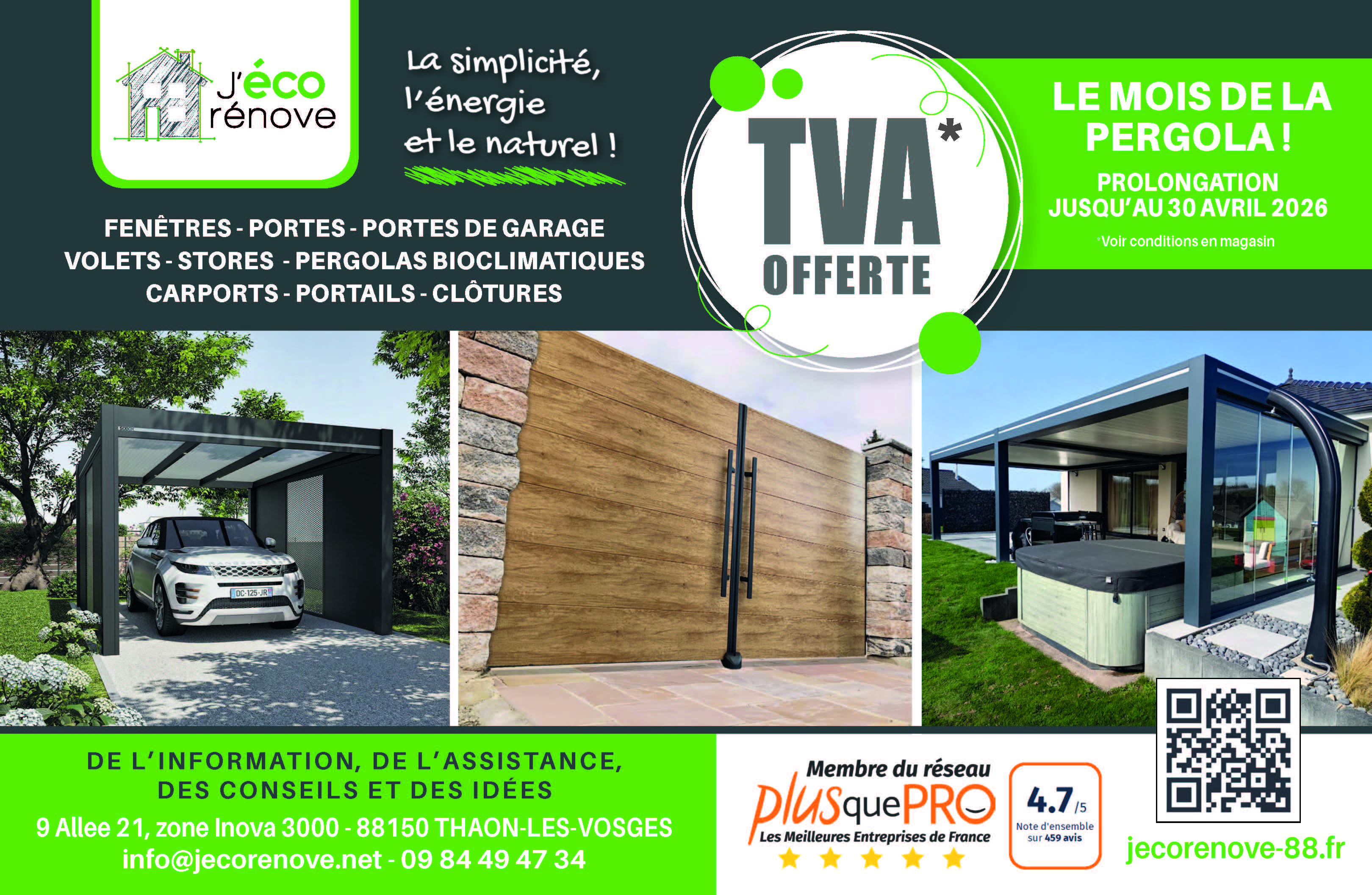Située à Thaon-les-Vosges, vers Épinal (88), J’écoRénove est votre partenaire pour vos travaux de fermeture, de rénovation et d’isolation.